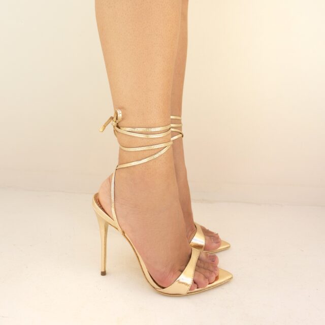 Sandália KATE Couro Tiras de Amarrar e Salto Fino Ouro