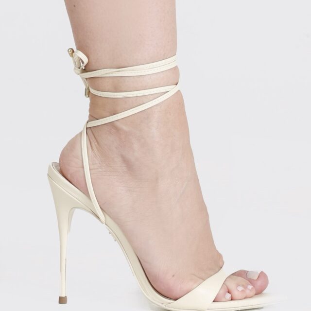 Sandália KATE Couro Tiras de Amarrar e Salto Fino Manteiga