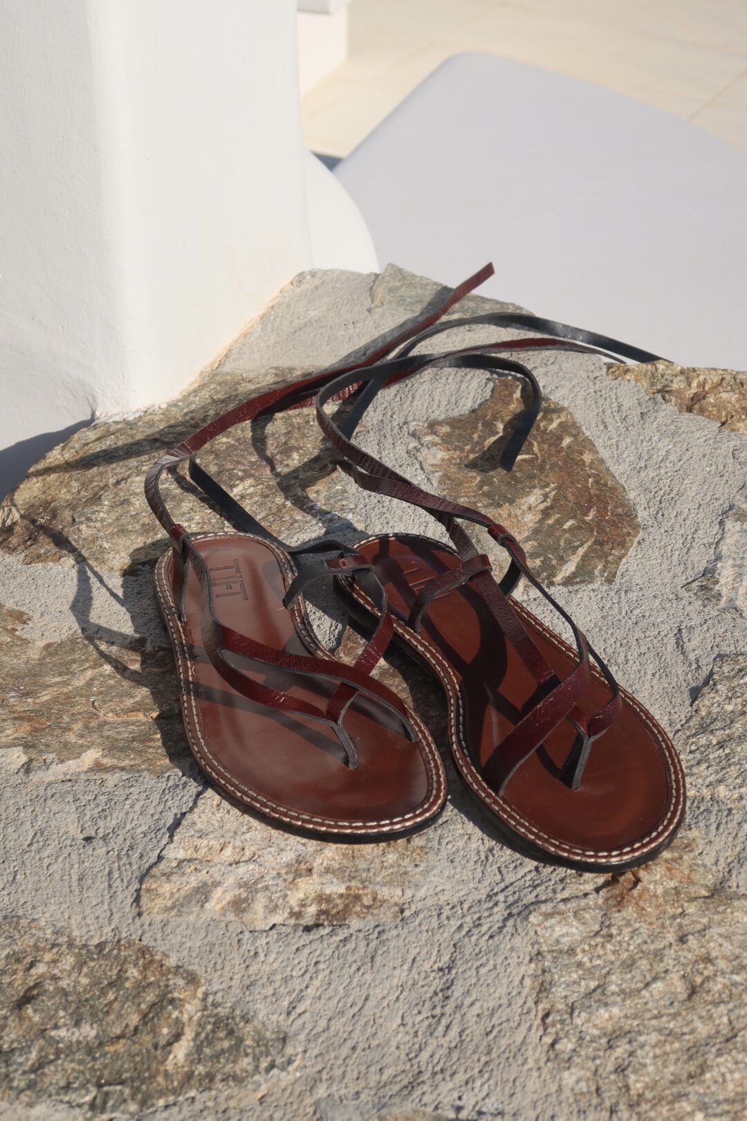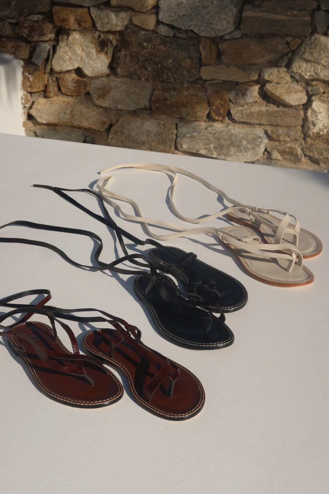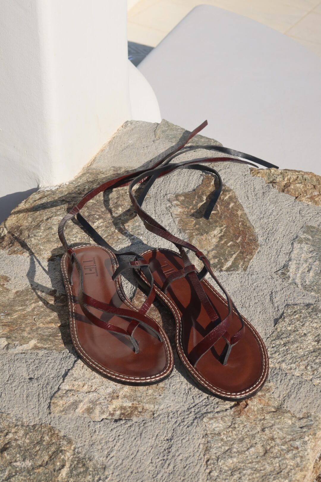 Feita em couro legítimo, com tiras delicadas e amarração suave, ela combina o conforto dos dias ensolarados com a feminilidade de quem sabe que a simplicidade também é luxo.