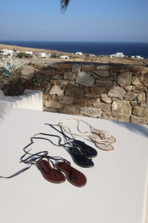 Leve como o vento do mar Egeu, sofisticada como o couro que toca a pele.