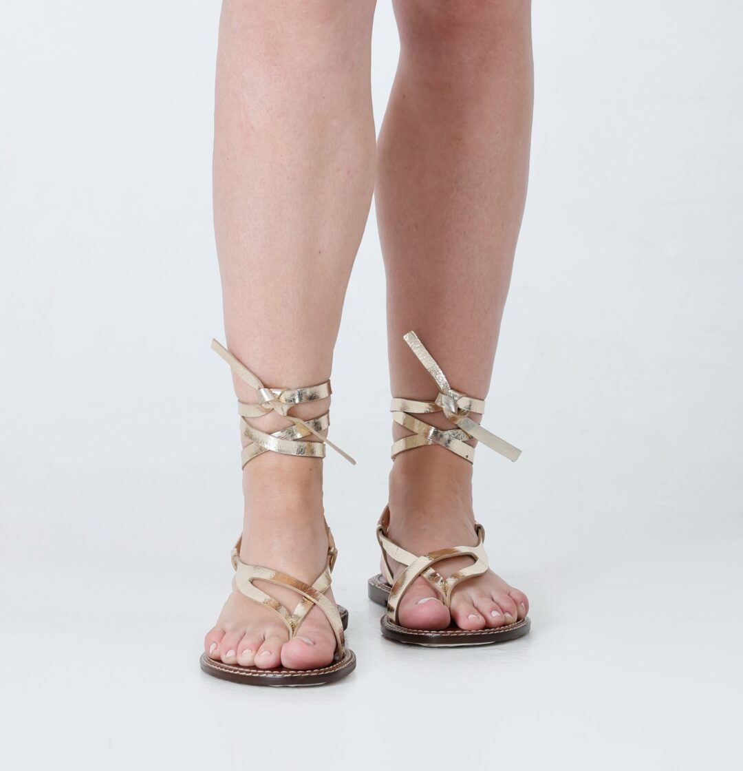 Sandália KATE Couro Tiras de Amarrar e Salto Fino Dourada
