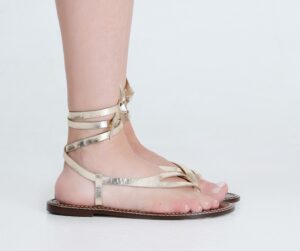 Feita em couro legítimo, com tiras delicadas e amarração suave, ela combina o conforto dos dias ensolarados com a feminilidade de quem sabe que a simplicidade também é luxo.