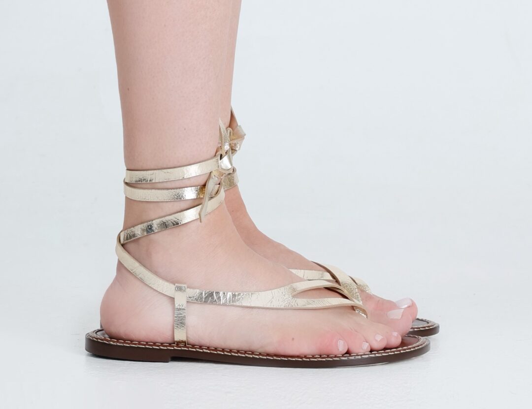 A Rasteira Santorini, da Tift, nasceu para traduzir o charme natural do verão com um toque de elegância atemporal.