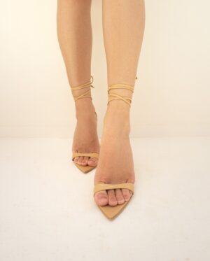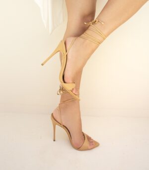 Sandália KATE Couro Tiras de Amarrar e Salto Fino Nude