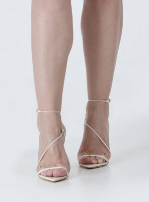 Sandália Cindy Tira em Metal Salto Alto Off-White